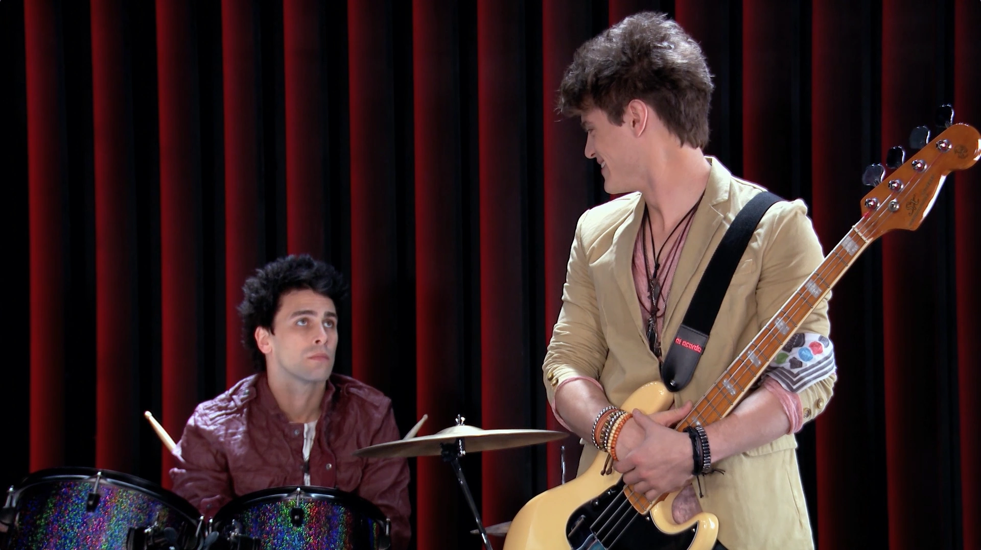 Pedro tells Nico and Simón that they have to focus on the band more and prioritize it over the skating competition. They both agree and they tell Pedro that they're only doing the skating competition for Jim and Luna.